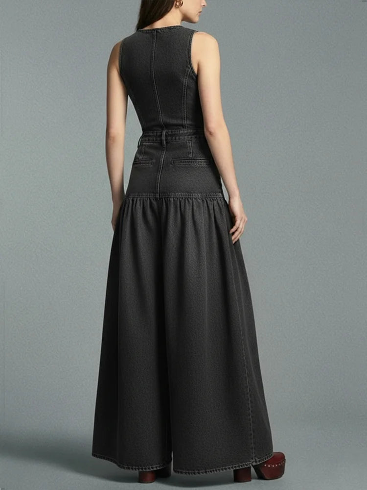 Lässiger Damen-Jeansoverall mit weitem Bein
